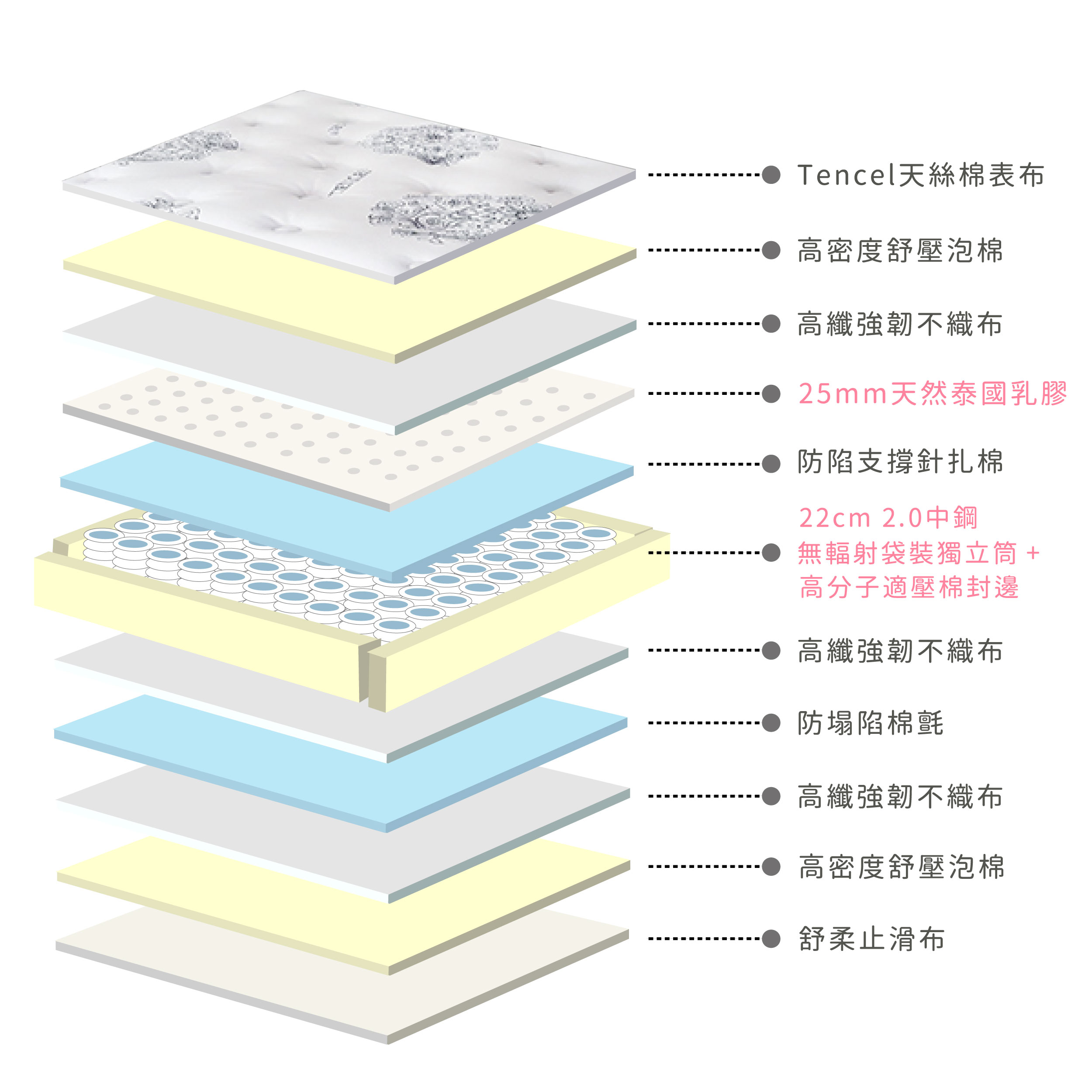 ●此床墊建議每三個月頭尾旋轉180度對調。